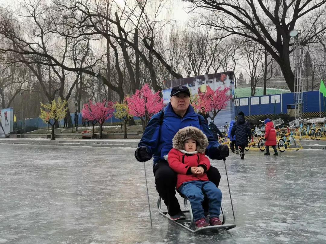 刚刚进入寒假生活的小朋友们开始了一场火热的“冰上龙舟比赛”,感受“冰上之旅”,尽管天气寒冷,大家穿着厚厚的羽绒服,还有很多参赛小朋友被冻得小脸通红,但依然挡不住大家的参与热情,他们的口号声和欢笑声几乎一刻都没有停,大家心往一处想,劲往一处使,公园冰面上充满了欢声笑语。