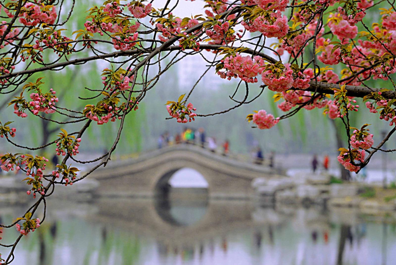 第十四届“春到玉渊潭”摄影比赛获奖作品《樱红桥上行》 作者:杨炯